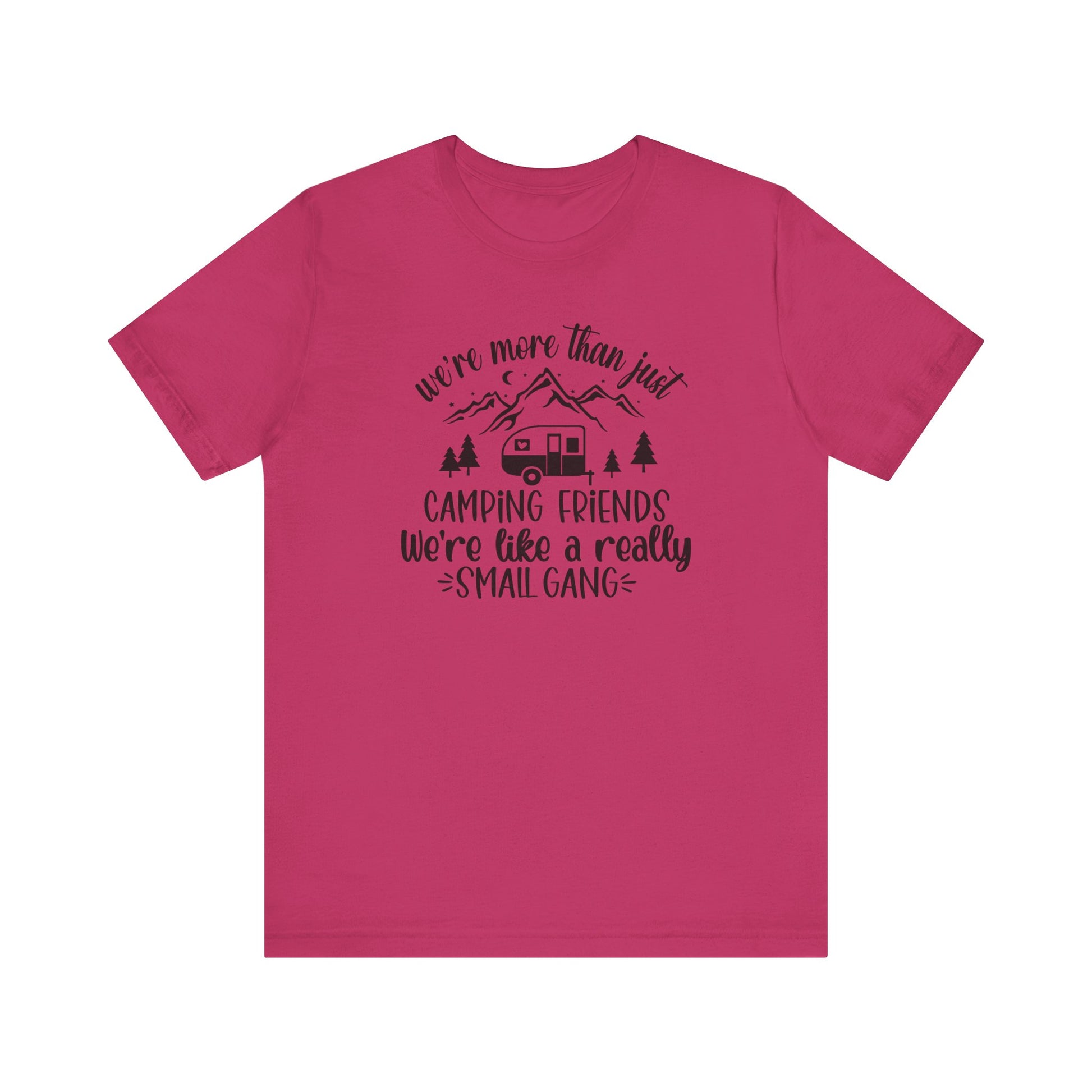 Women's Camping Friends T-Shirt - 'We're Like a Small Gang'-Black Text